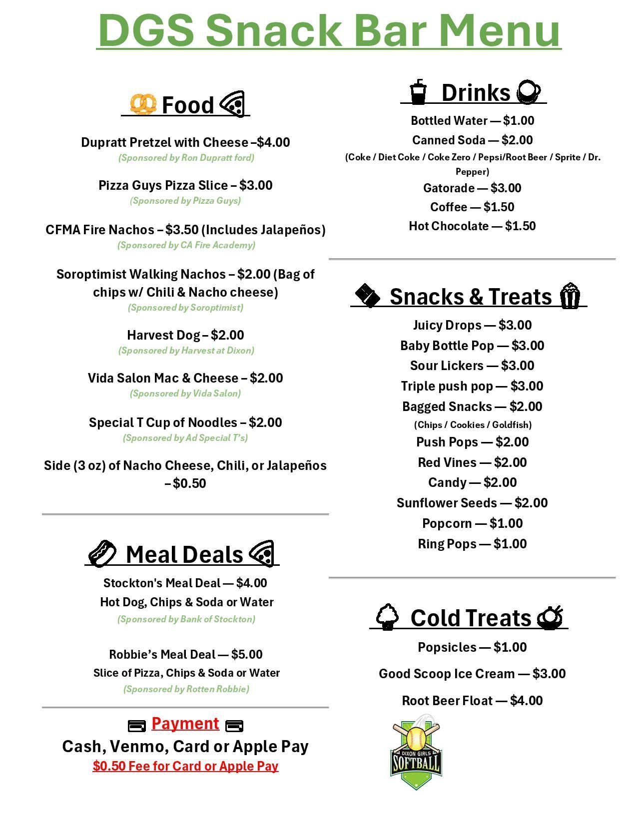 Snack Bar Menu